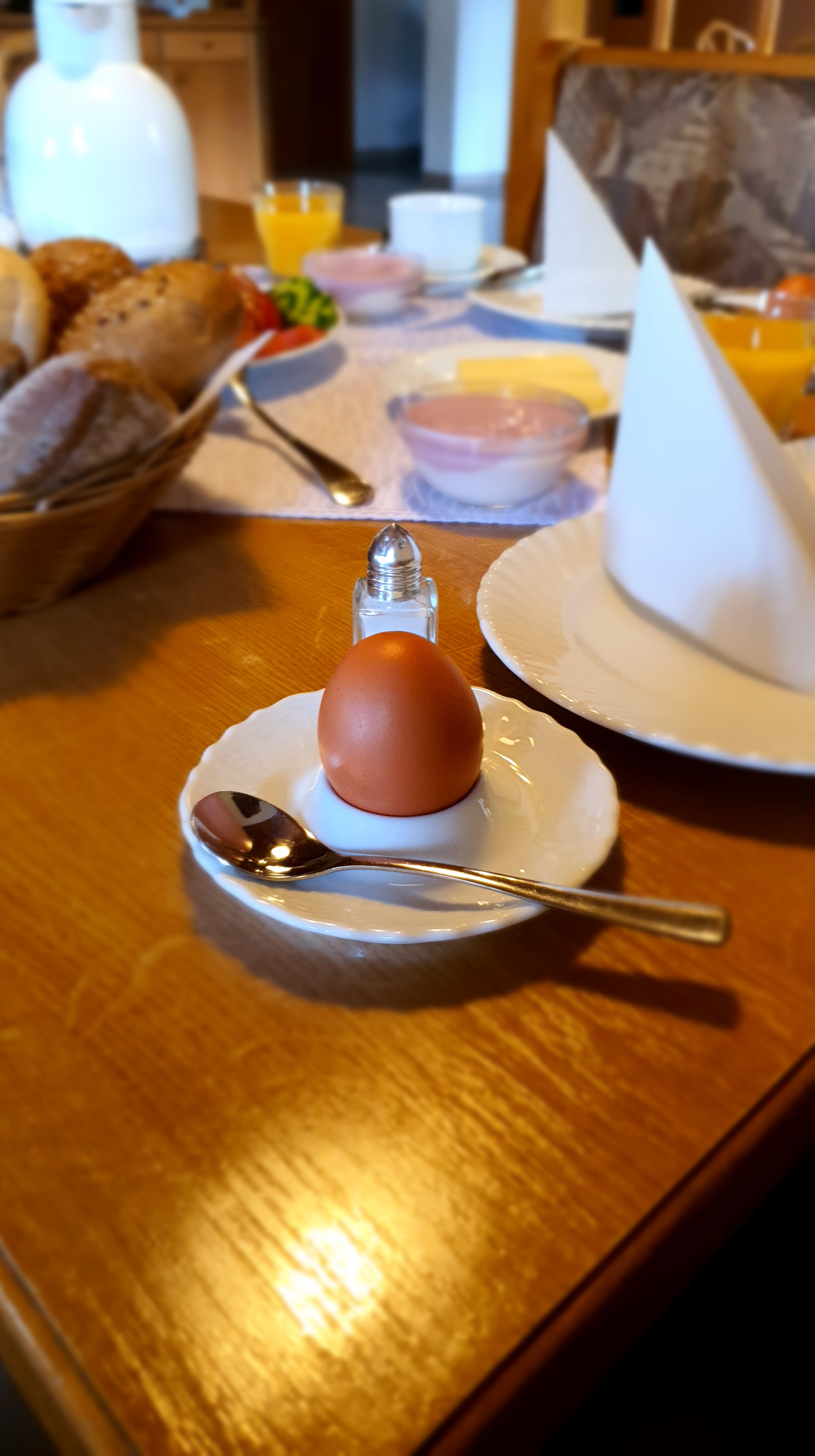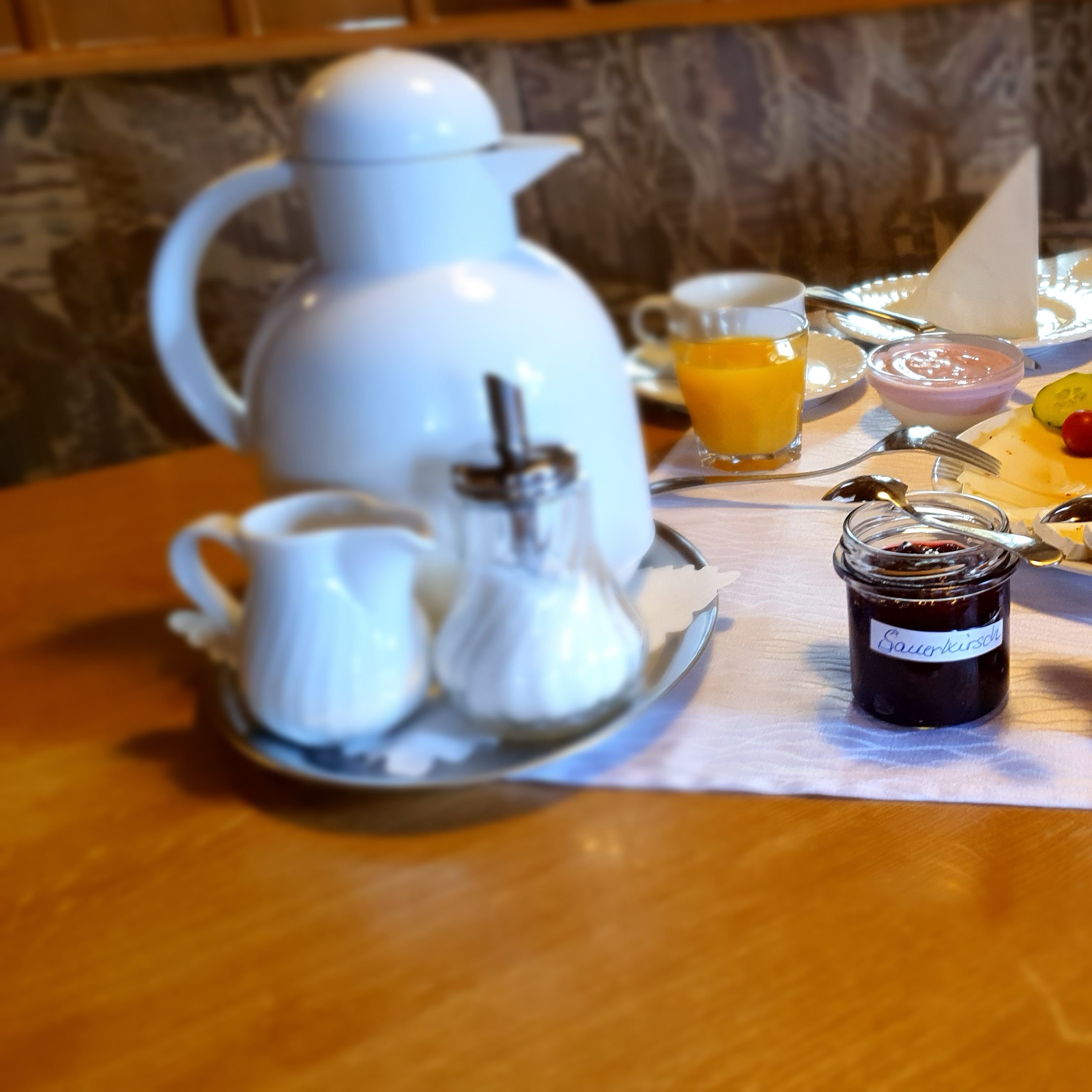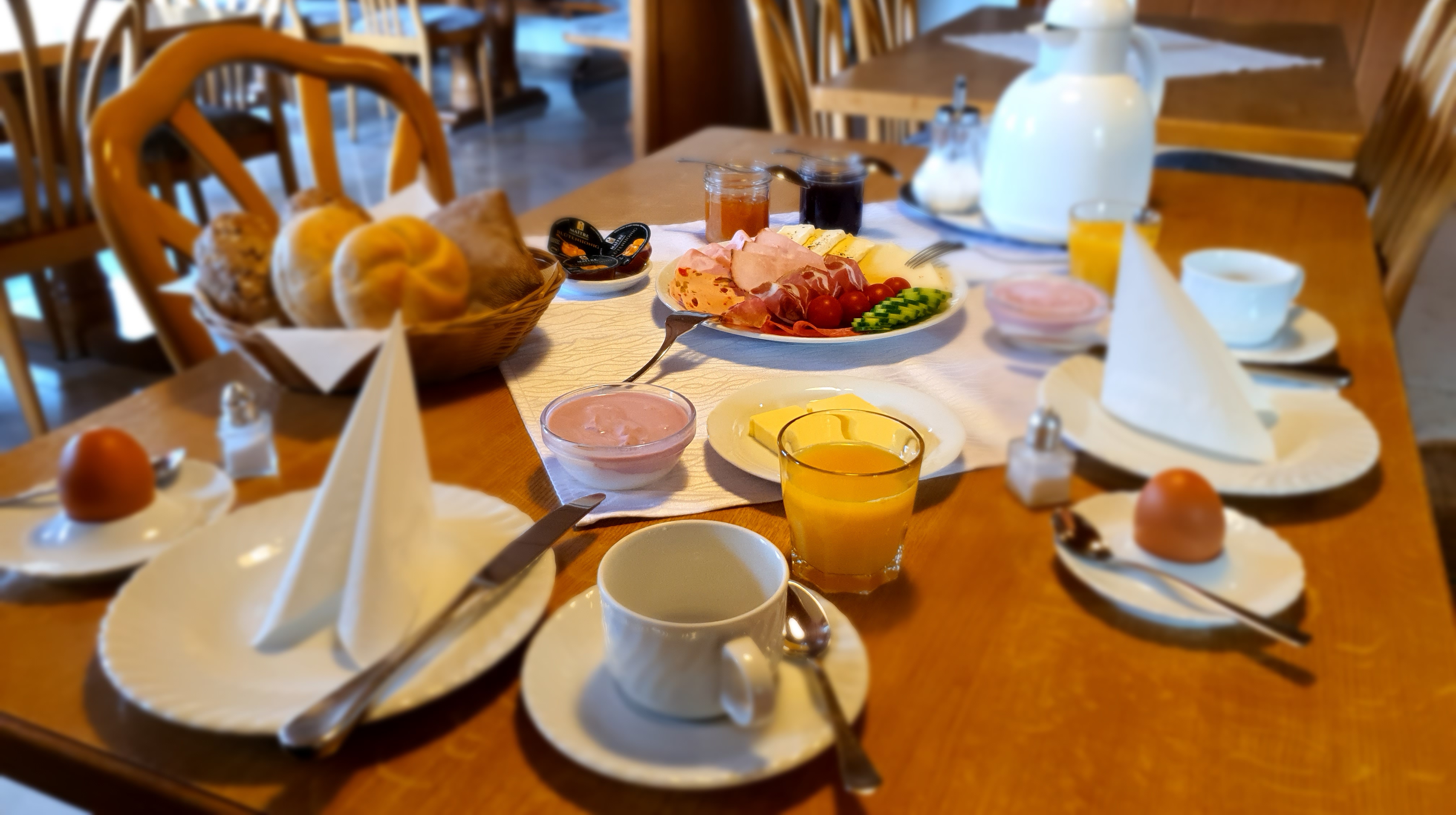 Wir servieren Ihnen zur vereinbarten Uhrzeit Ihr persönliches Frühstück in unserer Gaststube.
